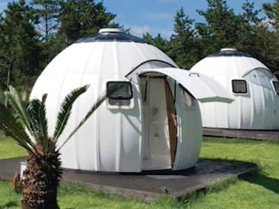 組み立てが簡単・便利なプレハブ工法による「イージードームハウス」は、従来の固定型住居や施設様式の概念とは異なる新しい居住空間スタイルを提案します。アウトドアでユーザーニーズに合わせて活用できる多目的ハウスです。