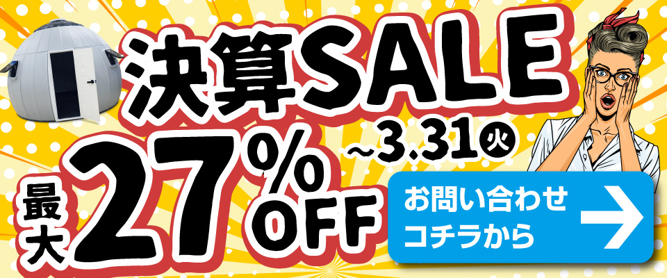 | 大きさ | 外寸 : 最大外径3,360 × 全高2,550 床厚60(mm) 内寸 : 最大内径3,280(床面内径3,000) × 室内高2,350(mm) |